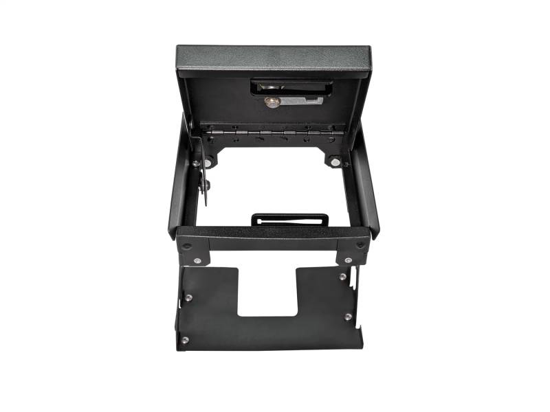 Tuffy designs and manufactures the finest console safes in the industry. Tuffy continues this legacy with the new console safe for the 2021 and newer Ford Bronco. Keep your gear secure and your hands safe with Tuffy's exclusive friction bracket, that'll keep the lid up while you access you gear. The Console Safe maintains a completely stock look, including full use of the factory armrest and lid. Featuring a durable texture powder coat finish, the safe comes ready to install in just a few minutes without drilling.