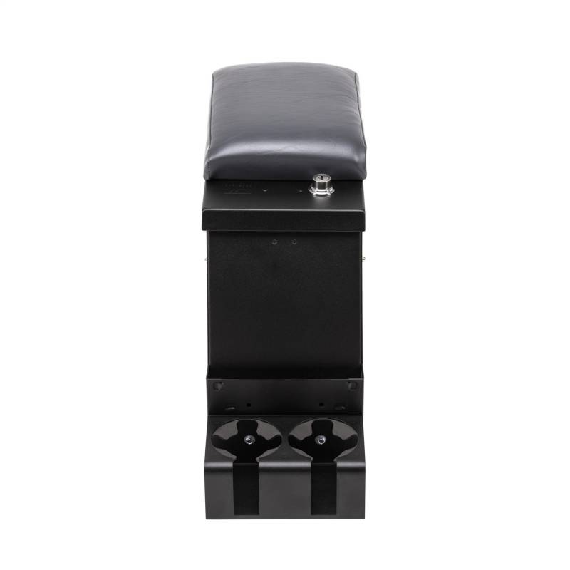 This high security 16 gauge steel console features Tuffy's patented pushbutton latch system. For safety and convenience while operating the vehicle, the lid also latches closed without having to be locked. It has a spacious compartment for mounting a CD changer, storing tools, electronic equipment, cellular phones, and other valuables. Rubber floor mat is included; other accessories are available.
