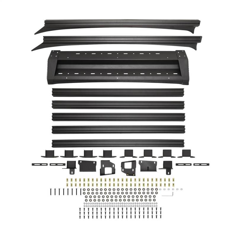 Introducing the all-new Westin Mesa Roof Rack, the ultimate companion for adventure enthusiasts and outdoor explorers! Crafted with precision engineering using high-quality extruded aluminum. This premium material offers unparalleled strength, durability, and corrosion resistance, making it the perfect choice for outdoor enthusiasts seeking a reliable and long-lasting roof rack. The multi-purpose cargo management system of the Westin Mesa Roof Rack is designed with flexibility in mind. Its 2.5in. x 1.5in. adjustable crossbars allow you to customize the setup according to the size and shape of your cargo. It features a removable 16-gauge aluminum wind deflector panel and 11-gauge aluminum visor side frames that serves a dual purpose. First, the wind deflector enhances aerodynamics by redirecting airflow, reducing drag, and minimizing wind noise during your travels. Enjoy a quieter and more fuel-efficient journey, all while maintaining a sleek and stylish appearance. Second, removing the wind deflector panel reveals a convenient light mount channel. This innovative design feature allows you to easily install auxiliary lighting to illuminate your path during nighttime adventures or low-light conditions enhancing your visibility and safety. The Mesa Roof Rack is built to last and features an electrostatic base coat for superior corrosion resistance, in combination with a durable textured black powder coat finish. All Mesa Roof Racks come complete with all necessary hardware to provide a hassle-free installation, while providing a full 3-Year warranty. Whether youre planning a weekend camping trip, a cross-country road adventure, or simply need extra storage space for your gear, this roof rack is the perfect solution.