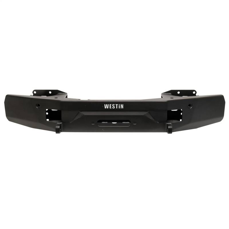 The Pro-Series Mid Width Front Bumper from Westin has a great looking and highly functional design. The distinctive low-profile bumper design retains the OEM bumper factory styling, while adding a winch capable platform engineered to accommodate 8,000-12,000 lb. synthetic rope winches with a hawse fairlead. The recessed hawse fairlead helps to achieve proper approach angles. It features large winch area access holes for easier operation, and provides two additional recovery/mounting points. To give you even more visibility, the Pro-Series fits an optional single row 20 in. LED light bar (sold separately). This heavy-duty bumper upgrade is built to last, constructed of a stout 10-gauge steel outer shell, with a beefy heavy-duty 4-gauge center section for easy installation. This design features a durable textured black powder coat finish with an e-coated base coat, providing long lasting corrosion protection from the elements, and is backed by a 3-year warranty. The Pro-Series Wid Width Front Bumper from Westin comes complete with all mounting brackets and hardware.