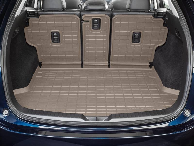 Do you often find yourself putting your back seats down to make room for pets, gear, groceries and more? WeatherTech's SeatBack Cargo Liner HP safeguards the base and up the back seats of your vehicle's cargo area, even when the seats are down! This cargo liner is made from the same heavy-duty, rubber-like material as our bestselling FloorLiner HP, offering a durable one-piece mat that defends against spills and messes. Its patent pending expandable accordion hinge allows you to put your back seats in the full-down position and maintain uninterrupted coverage - no more spills or pet hair adhering to the back of your seats or cargo area! There's even a specially designed water retention ribbing system that helps trap water. SeatBack Cargo Liner HP defends against the dirt, grass, mud, and debris that come from workout gear, dogs, sports equipment, groceries, or anything else you put in your cargo area. Non-slip nibs on the underside - and hook fasteners - keep this trunk liner in place - both on the floor and up the backs of your seats. Plus, because it's a one-piece mat, installation and removal for cleaning is easy. Have young kids? No problem! SeatBack Cargo Liner HP features a trimmable outline to accommodate attachments for child car seats - known as ISOFIX - while the cargo mat stays in place. Made from a thermoplastic elastomer, this cargo mat offers the flexibility and durability needed for maximum protection. It won't break down in extreme weather, and is 100% recyclable with no latex, PVCs, cadmium or lead. Enjoy high-performance, full coverage and protection for the bottom and seat backs of your cargo area with the American-made SeatBack Cargo Liner HP.