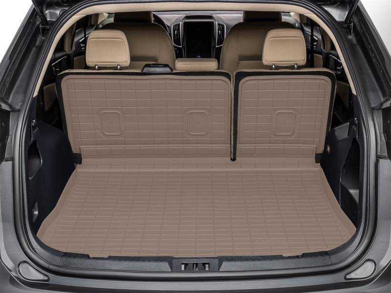 Do you often find yourself putting your back seats down to make room for pets, gear, groceries and more? WeatherTech's SeatBack Cargo Liner HP safeguards the base and up the back seats of your vehicle's cargo area, even when the seats are down! This cargo liner is made from the same heavy-duty, rubber-like material as our bestselling FloorLiner HP, offering a durable one-piece mat that defends against spills and messes. Its patent pending expandable accordion hinge allows you to put your back seats in the full-down position and maintain uninterrupted coverage - no more spills or pet hair adhering to the back of your seats or cargo area! There's even a specially designed water retention ribbing system that helps trap water. SeatBack Cargo Liner HP defends against the dirt, grass, mud, and debris that come from workout gear, dogs, sports equipment, groceries, or anything else you put in your cargo area. Non-slip nibs on the underside - and hook fasteners - keep this trunk liner in place - both on the floor and up the backs of your seats. Plus, because it's a one-piece mat, installation and removal for cleaning is easy. Have young kids? No problem! SeatBack Cargo Liner HP features a trimmable outline to accommodate attachments for child car seats - known as ISOFIX - while the cargo mat stays in place. Made from a thermoplastic elastomer, this cargo mat offers the flexibility and durability needed for maximum protection. It won't break down in extreme weather, and is 100% recyclable with no latex, PVCs, cadmium or lead. Enjoy high-performance, full coverage and protection for the bottom and seat backs of your cargo area with the American-made SeatBack Cargo Liner HP.