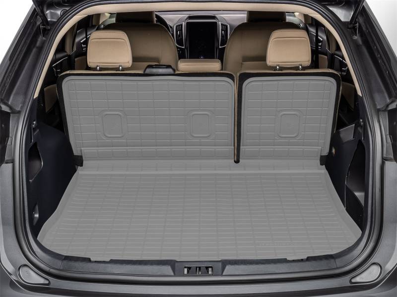 Do you often find yourself putting your back seats down to make room for pets, gear, groceries and more? WeatherTech's SeatBack Cargo Liner HP safeguards the base and up the back seats of your vehicle's cargo area, even when the seats are down! This cargo liner is made from the same heavy-duty, rubber-like material as our bestselling FloorLiner HP, offering a durable one-piece mat that defends against spills and messes. Its patent pending expandable accordion hinge allows you to put your back seats in the full-down position and maintain uninterrupted coverage - no more spills or pet hair adhering to the back of your seats or cargo area! There's even a specially designed water retention ribbing system that helps trap water. SeatBack Cargo Liner HP defends against the dirt, grass, mud, and debris that come from workout gear, dogs, sports equipment, groceries, or anything else you put in your cargo area. Non-slip nibs on the underside - and hook fasteners - keep this trunk liner in place - both on the floor and up the backs of your seats. Plus, because it's a one-piece mat, installation and removal for cleaning is easy. Have young kids? No problem! SeatBack Cargo Liner HP features a trimmable outline to accommodate attachments for child car seats - known as ISOFIX - while the cargo mat stays in place. Made from a thermoplastic elastomer, this cargo mat offers the flexibility and durability needed for maximum protection. It won't break down in extreme weather, and is 100% recyclable with no latex, PVCs, cadmium or lead. Enjoy high-performance, full coverage and protection for the bottom and seat backs of your cargo area with the American-made SeatBack Cargo Liner HP.