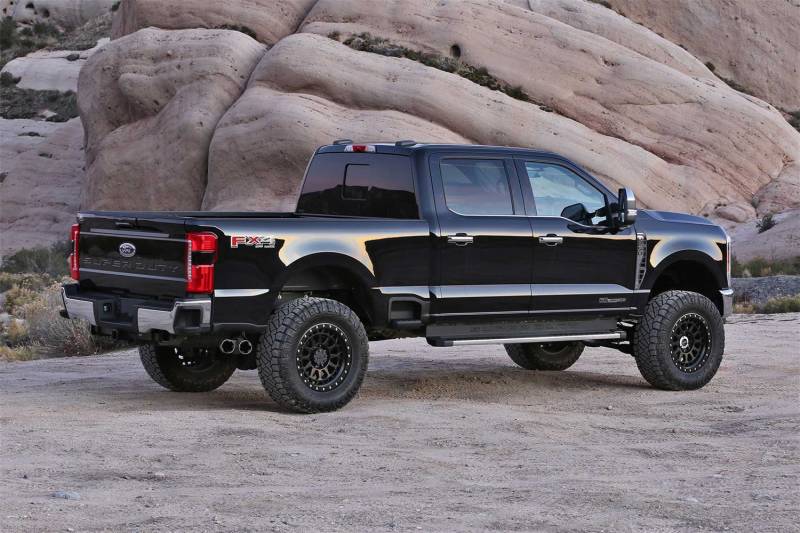 For the ultimate in suspension performance for the Super Duty we offer a bolt on 4 Link System that provides unsurpassed articulation and wheel travel. These 2 diameter heavy wall links feature race style 1 Uniballs for superior strength. Thick 1/4 steel brackets secure the 4 Links to the frame without cutting or welding. The system also includes Sway Bar Drops, Trac Bar relocation bracket, Pitman Arm, and U-Bolt kit.