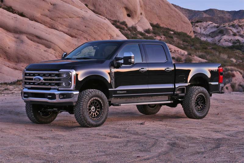 For the ultimate in suspension performance for the Super Duty we offer a bolt on 4 Link System that provides unsurpassed articulation and wheel travel. These 2 diameter heavy wall links feature race style 1 Uniballs for superior strength. Thick 1/4 steel brackets secure the 4 Links to the frame without cutting or welding. The system also includes Sway Bar Drops, Trac Bar relocation bracket, Pitman Arm, and U-Bolt kit.