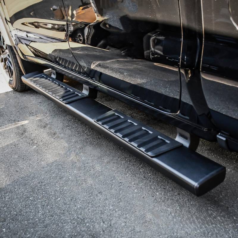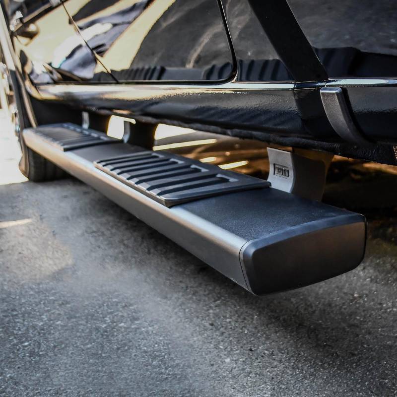 Westin R7 Boards feature oversized step pads and OE style traction grooves. R7 Boards are sold in complete kits that include: Driver and passenger-side boards vehicle specific mount kit and come with injection molded bracket covers for an extra clean look. R7 Boards are available in polished stainless steel backed by a lifetime warranty and black powder coated aluminum backed by a 3-year warranty.