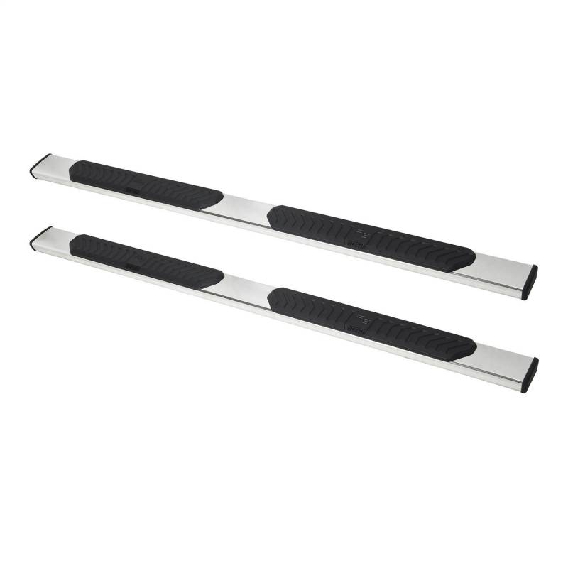Westin R5 Nerf Step Bars have 5 inch wide step area with a unique molded polymer step pad design. R5 Nerf Step Bars are rocker panel mounted and include injection molded bracket covers for a full and stylized appearance. R5 LED Light Kit upgrade is available, sold separately.