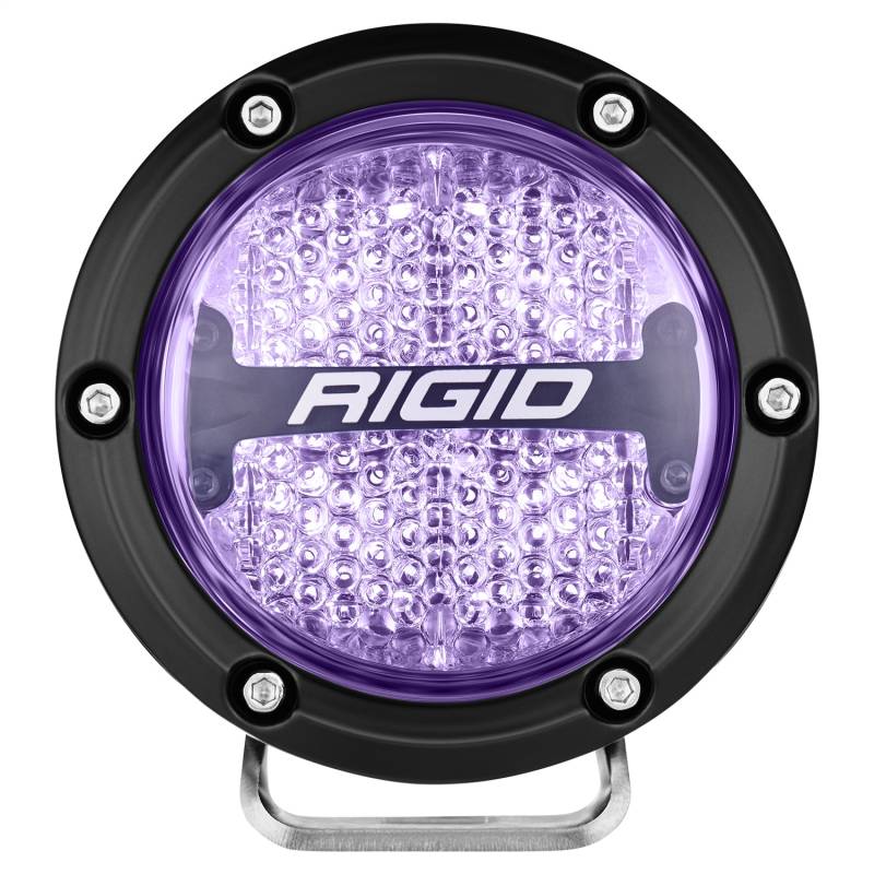 RIGID introduces the all-new 360-Series family of LED lights. The optimized beam patterns project up to 8,600 raw lumens and are protected by an aluminum housing, features a blacked-out circuit board, prominent RIGID branding, and limited lifetime warranty making them the most robust and useful round lights on the market. Choose between a 4- in. or 6- in. light, preferred backlight color and beam pattern for a customized experience and look. RIGIDs 360-Series feature beam patterns available from 17 degrees to 60 degrees, offering an option for any application. Available in 4 backlight colors: red, white, blue or amber. the RIGID 360-Series 4- in. also available in street legal SAE Compliant white and selective yellow. RIGIDs 360-Series round lights seamlessly integrate into multiple OEM applications and makes it easier than ever to Own The Night. Harness sold separately.