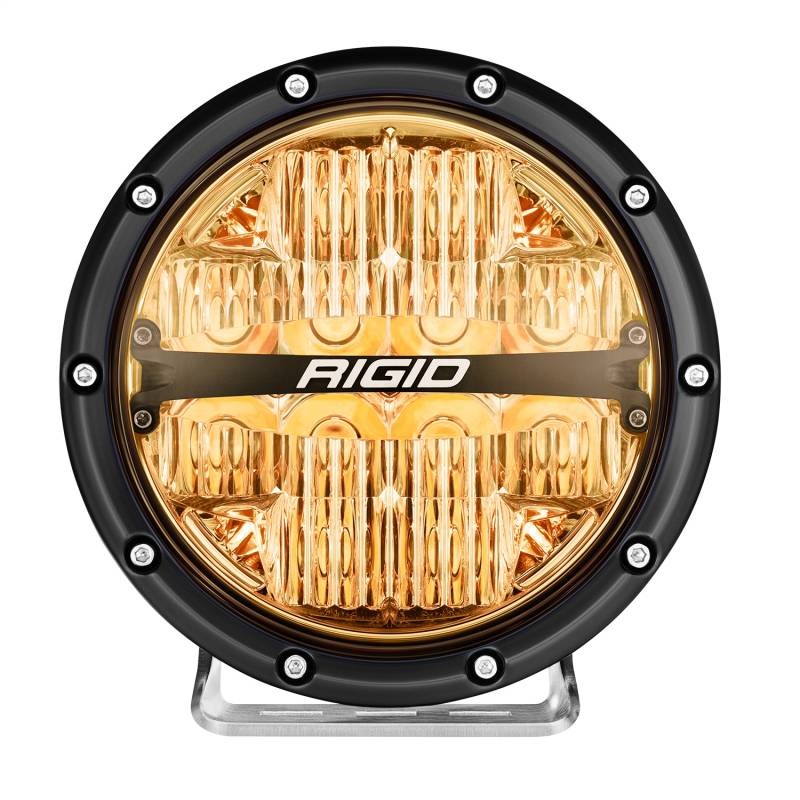 RIGID introduces the all-new 360-Series family of LED lights. The optimized beam patterns project up to 8,600 raw lumens and are protected by an aluminum housing, features a blacked-out circuit board, prominent RIGID branding, and limited lifetime warranty making them the most robust and useful round lights on the market. Choose between a 4- in. or 6- in. light, preferred backlight color and beam pattern for a customized experience and look. RIGIDs 360-Series feature beam patterns available from 17 degrees to 60 degrees, offering an option for any application. Available in 4 backlight colors: red, white, blue or amber. the RIGID 360-Series 4- in. also available in street legal SAE Compliant white and selective yellow. RIGIDs 360-Series round lights seamlessly integrate into multiple OEM applications and makes it easier than ever to Own The Night. Harness sold separately.