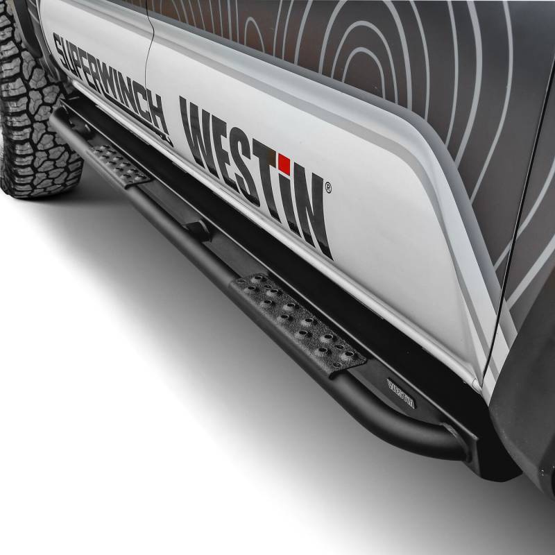 The all-new XTS Rock Sliders from Westin provide outstanding protection from rocks and other trail hazards, and feature a custom profile to match vehicle's contour for enhanced protection and great styling. Westin's XTS Rock Sliders are constructed from 12-gauge steel channel combined with a 1-3/4in. diameter .120in. thick wall round tube for superior durability. The XTS Rock Sliders feature bolt-on step plates with polyurea texture coated grip surfaces for slip resistance. These XTS Rock Sliders are built to last through the use of an electrostatic base coat for superior corrosion resistance in combination with a durable textured black powder coat finish. All XTS Rock Sliders come complete with all necessary hardware to provide a hassle-free installation, while a full 3-Year warranty provides peace of mind.
