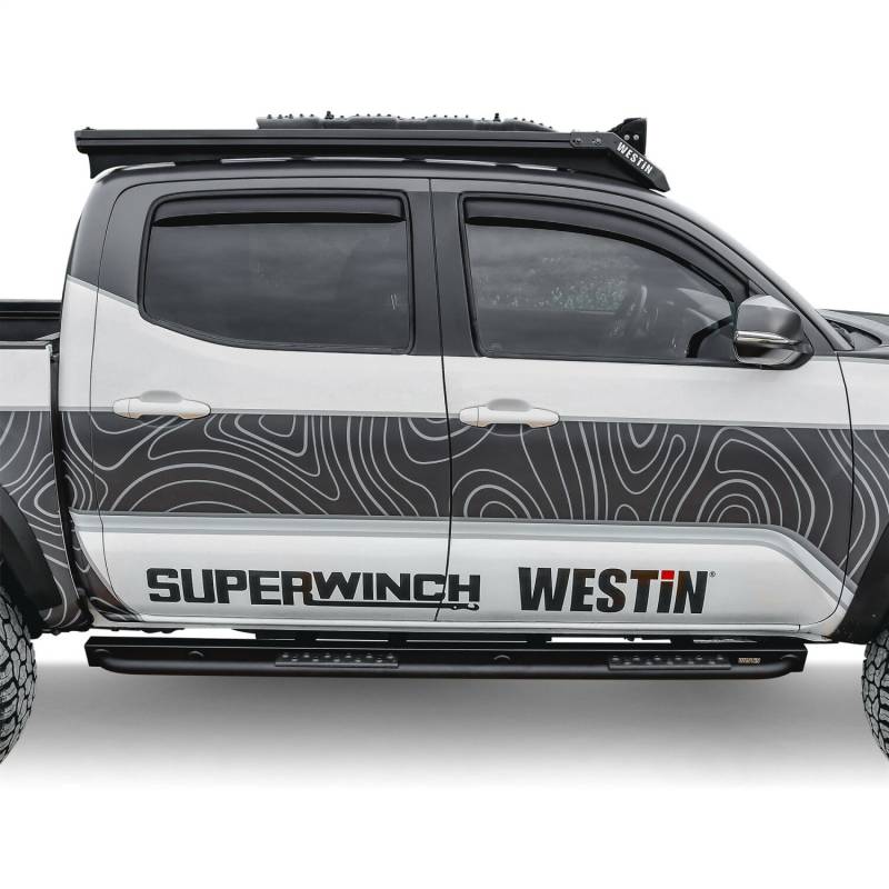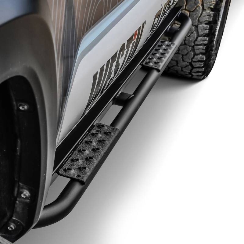 The all-new XTS Rock Sliders from Westin provide outstanding protection from rocks and other trail hazards, and feature a custom profile to match vehicles contour for enhanced protection and great styling. Westins XTS Rock Sliders are constructed from 12-gauge steel channel combined with a 1-3/4in. diameter .120in. thick wall round tube for superior durability. The XTS Rock Sliders feature bolt-on step plates with polyurea texture coated grip surfaces for slip resistance. These XTS Rock Sliders are built to last through the use of an electrostatic base coat for superior corrosion resistance in combination with a durable textured black powder coat finish. All XTS Rock Sliders come complete with all necessary hardware to provide a hassle-free installation, while a full 3-Year warranty provides peace of mind.