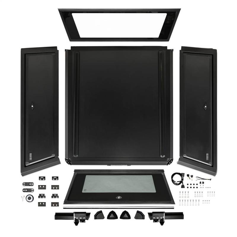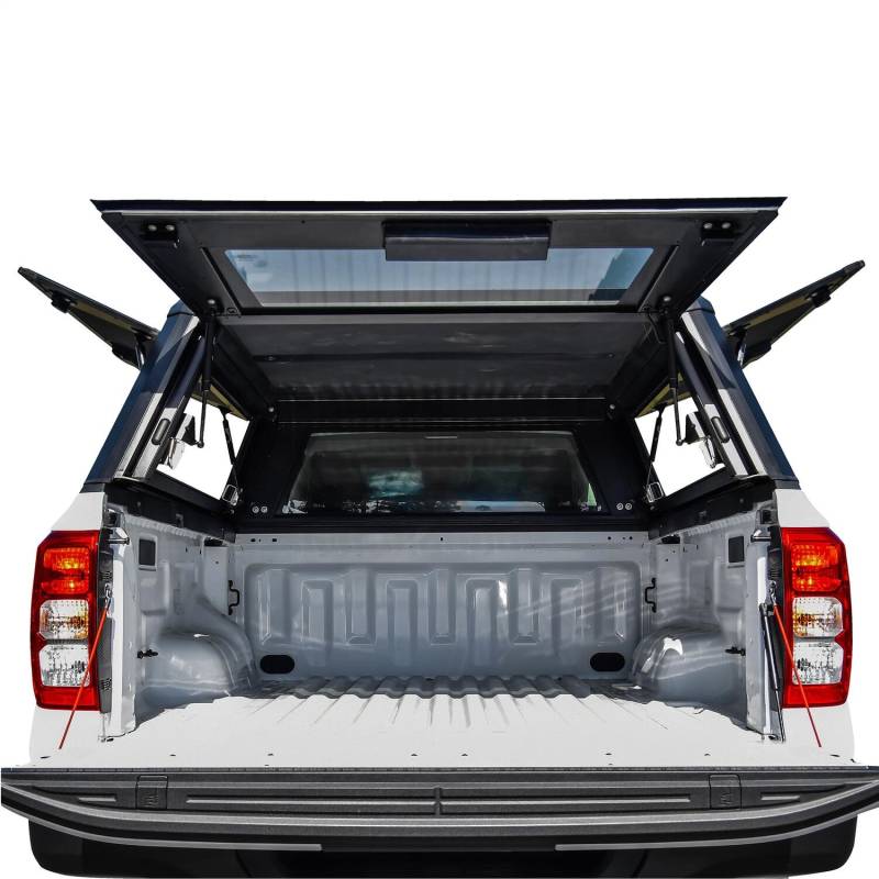 Elevate your truck experience with the Westin EXP Truck Cap – your journey, your way. Crafted with a 5-piece extruded aluminum construction, it strikes the perfect balance between strength and lightweight design. The double wall aluminum gullwing slide doors with locking t-handles ensure security, while the no-drill installation allows for effortless setup. With superior weather and dust resistance provided by the EPDM sponge double seal, your gear stays protected in any conditions. Equipped with integrated roof rails for mounting accessories, an auto lock/unlock rear door for easy accessibility, and heavy-duty locking t-handles with emergency release lever on driver side door, the EXP Truck Cap is built for versatility and safety. Plus, with a dynamic load limit of 300 lbs. and a static load limit of 700 lbs., it can handle all your adventure essentials. The powder-coated aluminum finish provides long-lasting corrosion protection, and the textured black finish, along with all necessary hardware and installation instructions included, completes the package. Experience durability, convenience, and style with the Westin EXP Truck Cap – because your truck deserves the best.