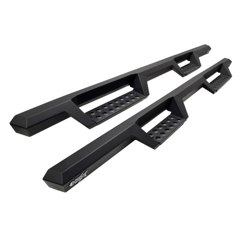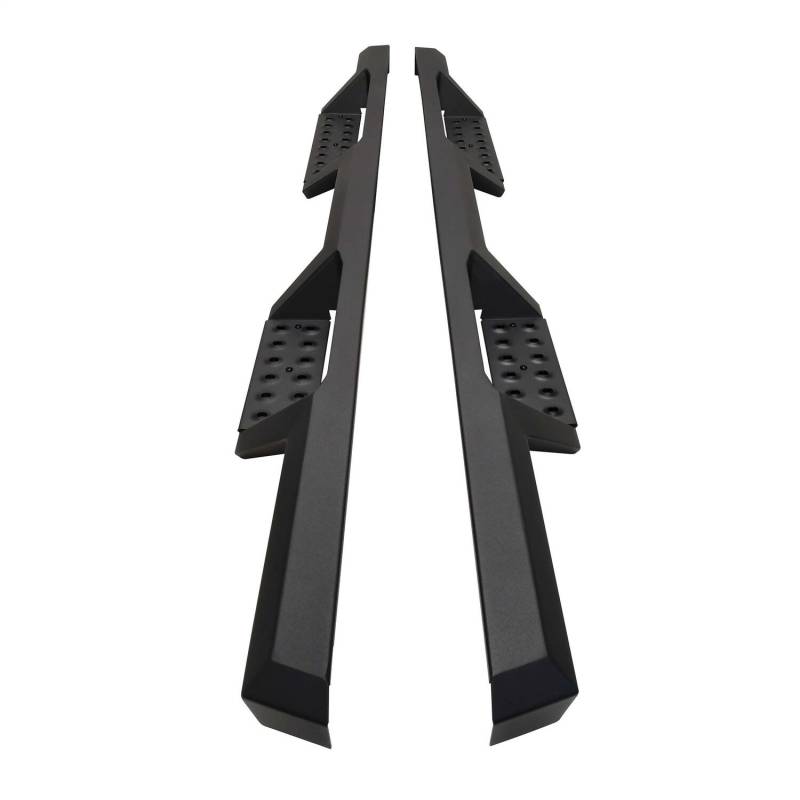 Westins HDX Drop Nerf Step Bars provide the rugged look and function that truck owners need and want. They feature a solid 1-piece steel construction and heavy duty punch plates creating high traction step areas. The HDX Drop Nerf Step Bars also feature Westins notched bar design which provides more than 2in. of additional toe/heel placement versus competitive brands. Available in a textured black finish that complements Westin HDX Bumpers. The HDX Drop Steps have vehicle specific applications and include a vehicle specific mount kit, installation hardware and instructions.