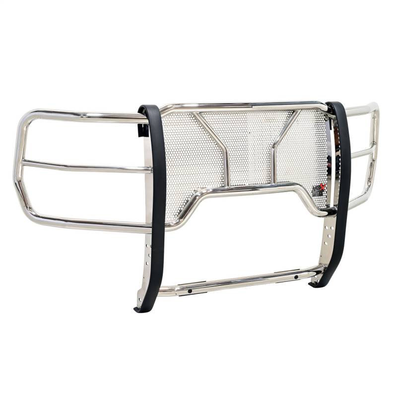 The HDX Grille Guard is the ultimate in extreme truck gear. It's a fully welded 1-piece grille guard that features full wraparound wings made of heavy duty 2 in. diameter tube. Uprights are finished and protected with extra wide rubber strip that is 1/8 in. thick and 2 3/4 in. wide resulting in a solid clean look. The full punch plate grille protects the vehicle's grille area. HDX Grille Guards are available in stainless and black powder coat finish.