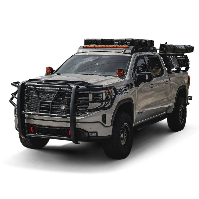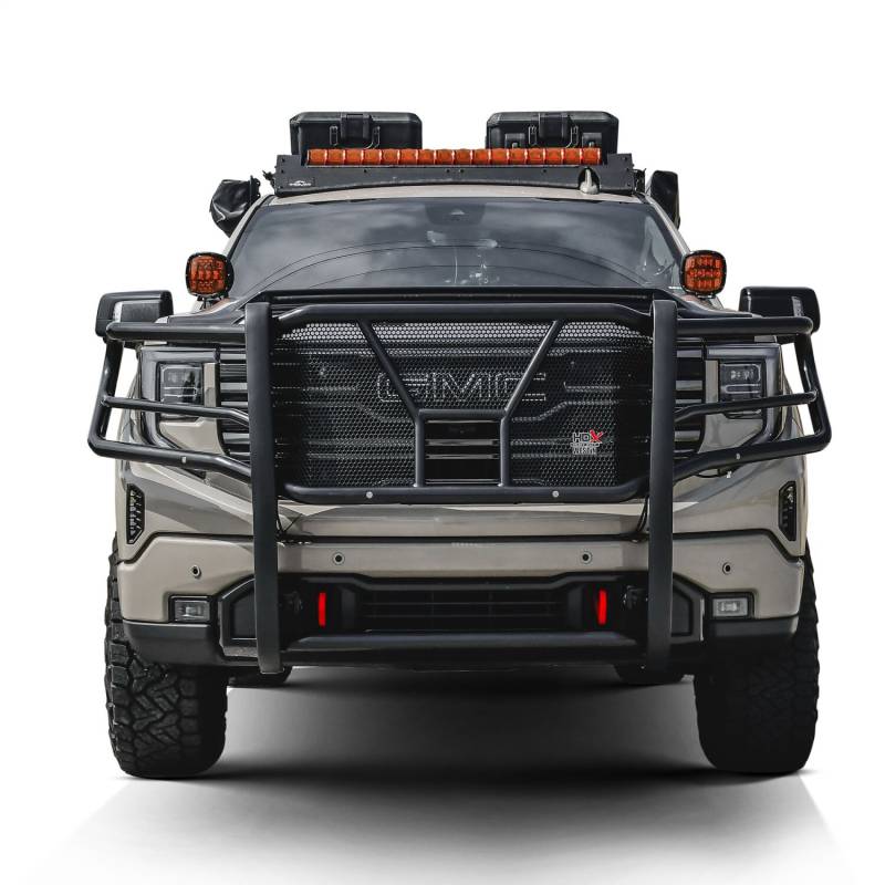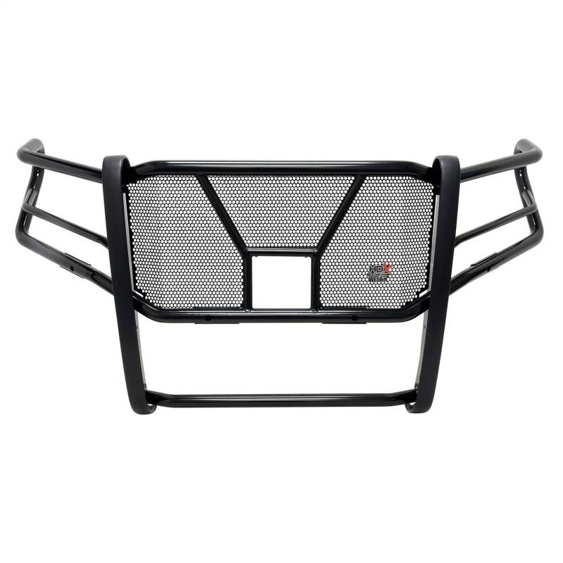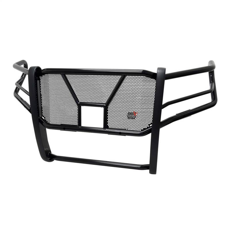 The HDX Grille Guard is the ultimate in extreme truck gear. Its a fully welded 1-piece grille guard that features full wraparound wings made of heavy duty 2in. diameter tube. Uprights are finished and protected with extra wide rubber that is 1/8in. thick and 2 3/4in. wide resulting in a solid clean look. The full punch plate grille protects the vehicles grille area. HDX Grille Guards are available in stainless and black powder coat finish.