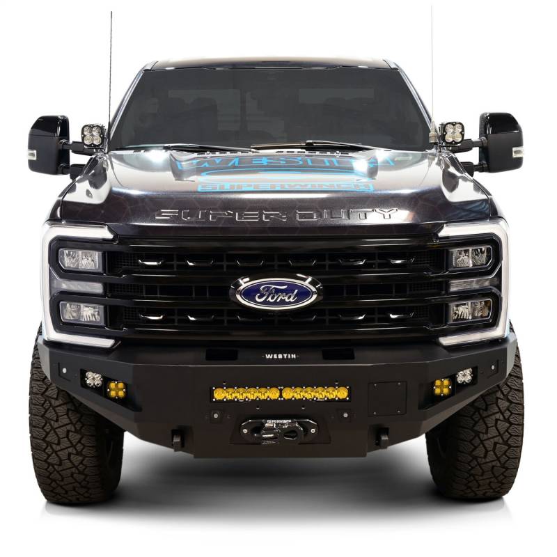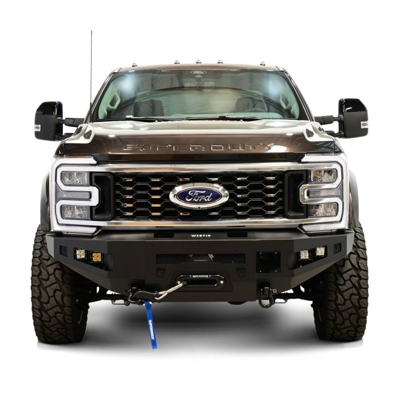 The Pro-Series Front Bumper from Westin is an attractive, heavy duty, "winch capable" upgrade which retains the OE factory features while upgrading both looks and functionality. Built for adventure, this bumper is ready for anything standing in its way. The Pro-Series was engineered to improve both approach angles and ground clearance for enhanced off-road capabilities. Constructed with a 10 gauge steel bumper shell the Pro-Series is designed for maximum strength and durability. Utilizing a heavy duty 1/4in. steel center section capable of accomodating most any 12k lb. winch, and added welded mounting points for recovery, this bumper takes you off the highway with confidence. Engineered to fit most double-row 20in. LED light bars (sold separately) for added safety on those late night excursions. Finished with a durable E-coat and black textured 2-stage treatment and backed by a full 3-year warranty Westin has you covered. Includes all the necessary mounting hardware for a "hassle free installation". Pro-Series is available for Ford, Chevy, Ram and Toyota applications. Add the matching Pro-Series Rear bumper to complete the look and take your truck to the next level.