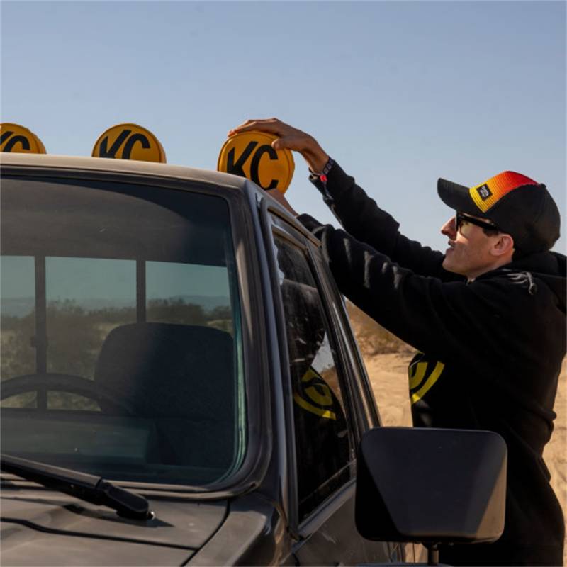 In response to popular demand, this is the comeback of the 6 in. Yellow Vinyl KC Covers. We took the exact styling of the OGs, and incorporated modern materials and construction. These stand as a symbol of our enduring legacy and a testament to the timeless appeal of KC craftsmanship. These covers are designed to fit both new and vintage KC lights. These covers are not just accessories; they are a celebration of history. Perfect for those who value the vintage charm of KC's original designs, these covers are a limited-time offer, ensuring your lights stand out while paying homage to a rich history of illumination excellence.