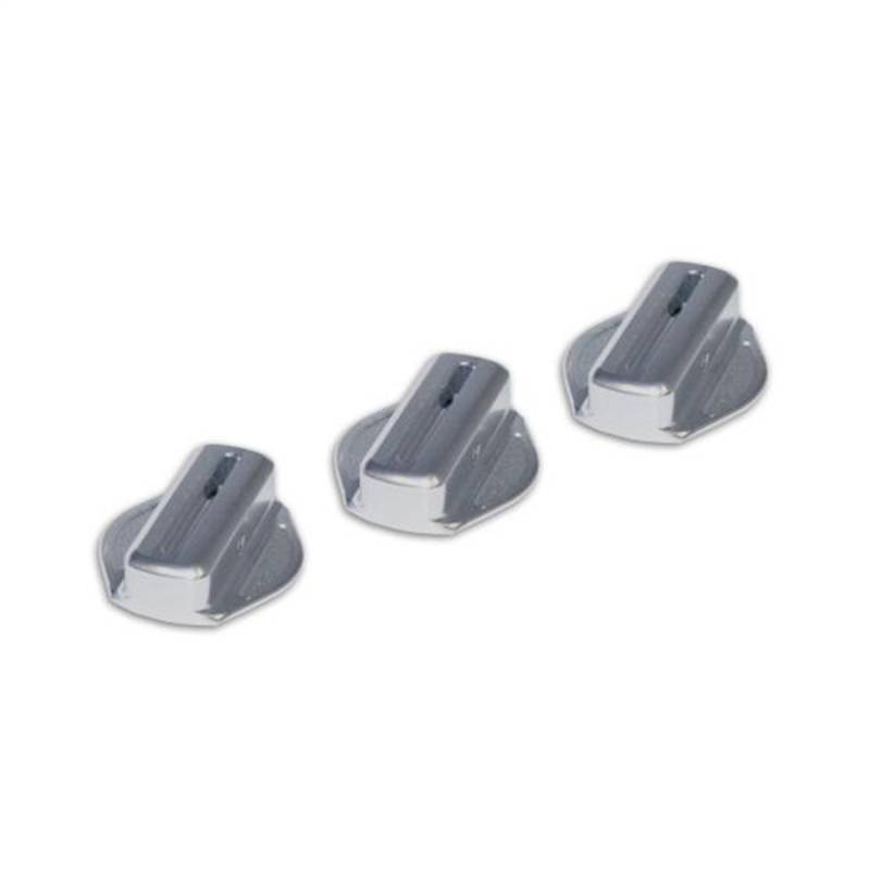 Made from billet aluminum and slotted to allow the knob to illuminate, the set of (3) install easily and add a nice look to the Jeep's interior. A great complement to the vent bezels, passenger grab bar and glove box handle cover.