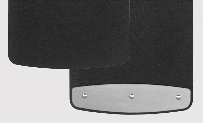 If you are looking for a versatile mud flap that offers the perfect combination of style and protection, then check out the ROCKSTAR Custom Splash Guard Mud Flaps. These tough and functional behind the wheel mud flaps are manufactured from 5/16 in. extruded rubber for supreme strength and lasting durability. You can add optional polished stainless steel trim plates to complement chrome details on your pickup or go without for a subtle all-black appearance. Easily increase style and protection to your truck with these ROCKSTAR Custom Splash Guard Mud Flaps. They are sold in sets of two and are available for the front or rear of your pickup. They are custom fit specifically for your vehicle and are pre-cut to match your factory mounting hole locations for the best possible fit. They include all the mounting hardware, such as the self-drilling hex screws. They are backed with a 1 year warranty and are made right here in the USA.