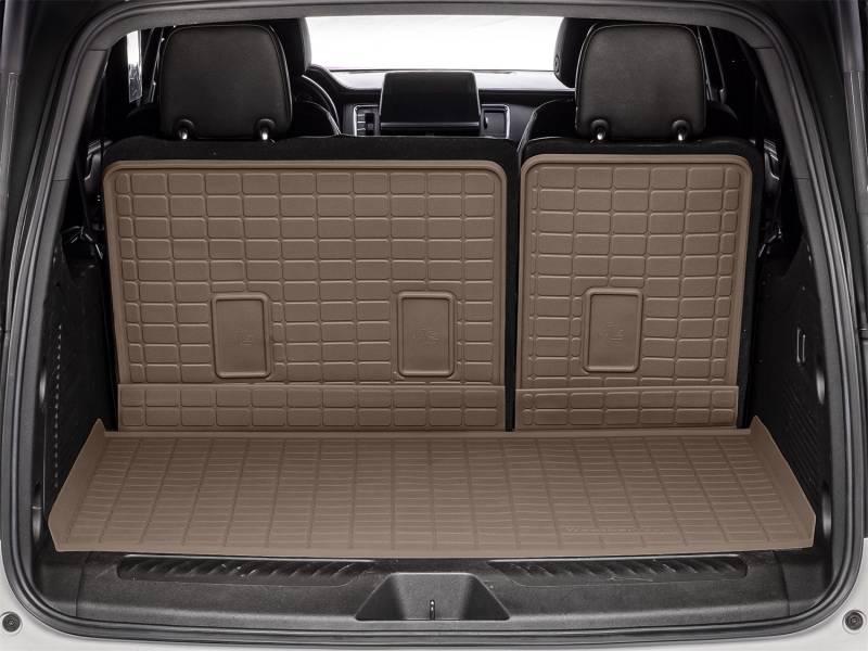 Do you often find yourself putting your back seats down to make room for pets, gear, groceries and more? WeatherTech's SeatBack Cargo Liner HP safeguards the base and up the back seats of your vehicle's cargo area, even when the seats are down! This cargo liner is made from the same heavy-duty, rubber-like material as our bestselling FloorLiner HP, offering a durable one-piece mat that defends against spills and messes. Its patent pending expandable accordion hinge allows you to put your back seats in the full-down position and maintain uninterrupted coverage - no more spills or pet hair adhering to the back of your seats or cargo area! There's even a specially designed water retention ribbing system that helps trap water. SeatBack Cargo Liner HP defends against the dirt, grass, mud, and debris that come from workout gear, dogs, sports equipment, groceries, or anything else you put in your cargo area. Non-slip nibs on the underside - and hook fasteners - keep this trunk liner in place - both on the floor and up the backs of your seats. Plus, because it's a one-piece mat, installation and removal for cleaning is easy. Have young kids? No problem! SeatBack Cargo Liner HP features a trimmable outline to accommodate attachments for child car seats - known as ISOFIX - while the cargo mat stays in place. Made from a thermoplastic elastomer, this cargo mat offers the flexibility and durability needed for maximum protection. It won't break down in extreme weather, and is 100% recyclable with no latex, PVCs, cadmium or lead. Enjoy high-performance, full coverage and protection for the bottom and seat backs of your cargo area with the American-made SeatBack Cargo Liner HP.