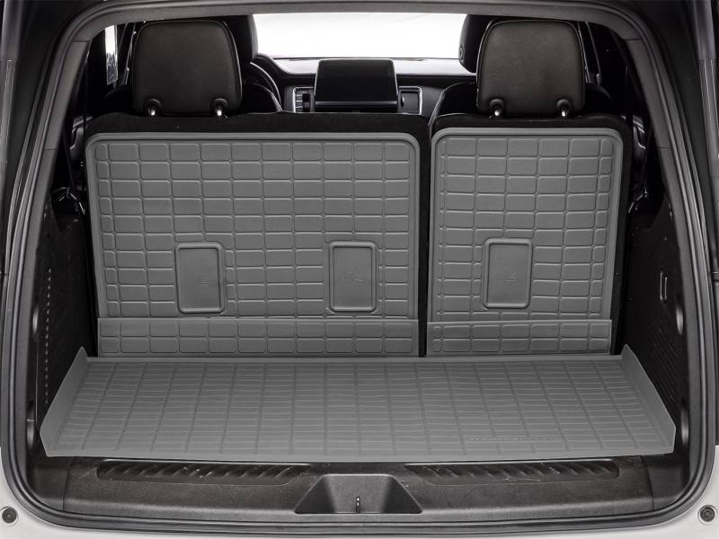 Do you often find yourself putting your back seats down to make room for pets, gear, groceries and more? WeatherTech's SeatBack Cargo Liner HP safeguards the base and up the back seats of your vehicle's cargo area, even when the seats are down! This cargo liner is made from the same heavy-duty, rubber-like material as our bestselling FloorLiner HP, offering a durable one-piece mat that defends against spills and messes. Its patent pending expandable accordion hinge allows you to put your back seats in the full-down position and maintain uninterrupted coverage - no more spills or pet hair adhering to the back of your seats or cargo area! There's even a specially designed water retention ribbing system that helps trap water. SeatBack Cargo Liner HP defends against the dirt, grass, mud, and debris that come from workout gear, dogs, sports equipment, groceries, or anything else you put in your cargo area. Non-slip nibs on the underside - and hook fasteners - keep this trunk liner in place - both on the floor and up the backs of your seats. Plus, because it's a one-piece mat, installation and removal for cleaning is easy. Have young kids? No problem! SeatBack Cargo Liner HP features a trimmable outline to accommodate attachments for child car seats - known as ISOFIX - while the cargo mat stays in place. Made from a thermoplastic elastomer, this cargo mat offers the flexibility and durability needed for maximum protection. It won't break down in extreme weather, and is 100% recyclable with no latex, PVCs, cadmium or lead. Enjoy high-performance, full coverage and protection for the bottom and seat backs of your cargo area with the American-made SeatBack Cargo Liner HP.