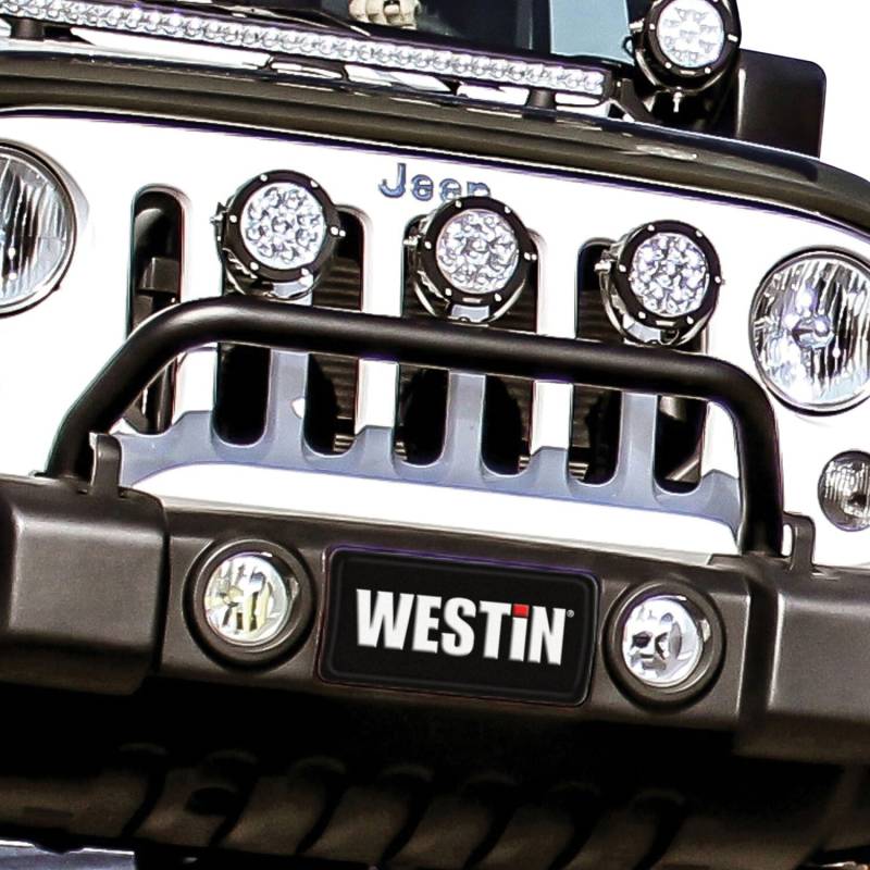 Westin Snyper Bumper Mount Light Bar for Jeep(R) Wrangler is made of 2 inch diameter 14 gauge mild steel tubing. Designed for use with OEM stock bumpers and utilizes existing mounting points for a bolt-on installation. Mount up to 3 auxiliary post mount lights on the welded tabs.