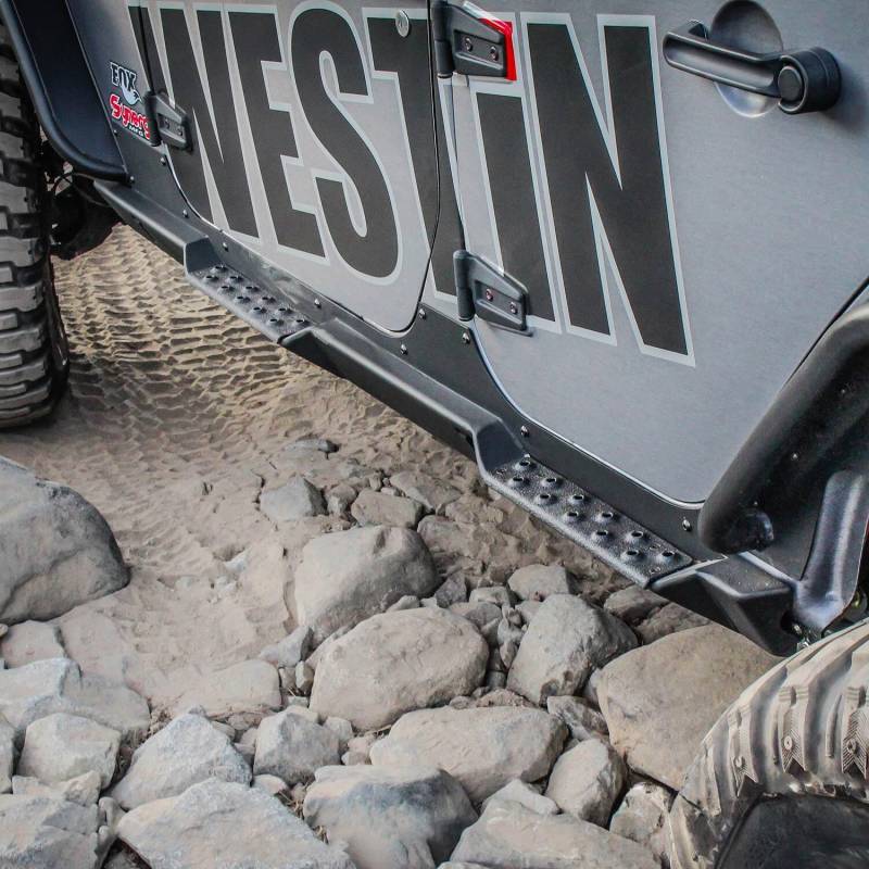 Westin Snyper Rock Sliders are made to protect the Jeeps rocker panel while providing a fully functional step. They mount tight to the rocker panel which provides maximum off-road ground clearance. Step areas feature heavy textured epoxy non-skid step area for maximum traction. They also feature two off-road jack points. Available for 2 door and 4 door Jeep(R) Wrangler JK.