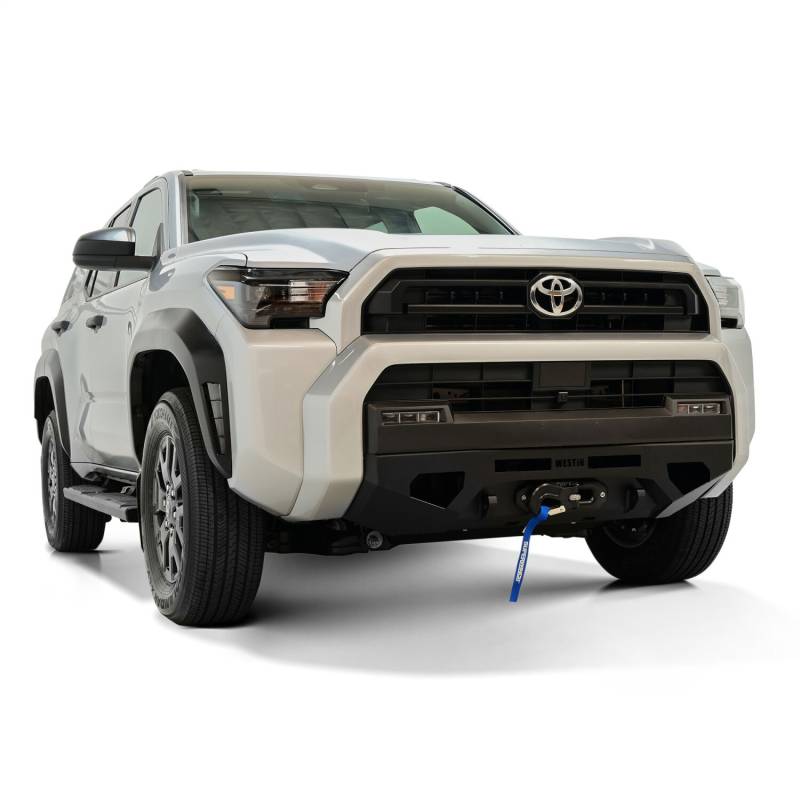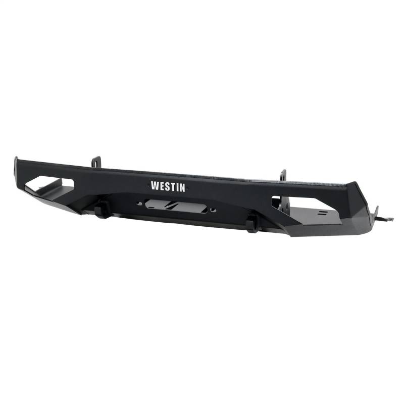 The Pro-Series Mid Width Front Bumper from Westin has a great looking and highly functional design. The distinctive low-profile bumper design retains the OEM bumper factory styling, while adding a winch capable platform engineered to accommodate 8,000-12,000 lb. synthetic rope winches with a hawse fairlead. The recessed hawse fairlead helps to achieve proper approach angles. It features large winch area access holes for easier operation, and provides two additional recovery/mounting points. To give you even more visibility, the Pro-Series fits an optional single row 20 in. LED light bar (sold separately). This heavy-duty bumper upgrade is built to last, constructed of a stout 10-gauge steel outer shell, with a beefy heavy-duty 4-gauge center section for easy installation. This design features a durable textured black powder coat finish with an e-coated base coat, providing long lasting corrosion protection from the elements, and is backed by a 3-year warranty. The Pro-Series Wid Width Front Bumper from Westin comes complete with all mounting brackets and hardware.