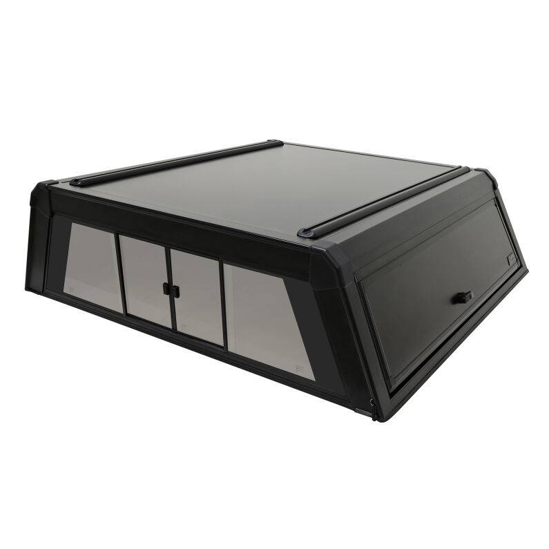 Elevate your truck experience with the Westin EXP Truck Cap With A Sliding Front Glass Window – your journey, your way. Crafted with a 5-piece extruded aluminum construction, it strikes the perfect balance between strength and lightweight design. The double wall aluminum gullwing slide doors with locking t-handles ensure security, while the no-drill installation allows for effortless setup. With the front sliding glass window, it allows pass throuhg access from the truck cab to the truck cap. The window can be opened from the interior or the exterior. With superior weather and dust resistance provided by the EPDM sponge double seal, your gear stays protected in any conditions. Equipped with integrated roof rails for mounting accessories, an auto lock/unlock rear door for easy accessibility, and heavy-duty locking t-handles with emergency release lever on driver side door, the EXP Truck Cap is built for versatility and safety. Plus, with a dynamic load limit of 300 lbs. and a static load limit of 700 lbs., it can handle all your adventure essentials. The powder-coated aluminum finish provides long-lasting corrosion protection, along with all necessary hardware and installation instructions included, completes the package. Experience durability, convenience, and style with the Westin EXP Truck Cap – because your truck deserves the best.