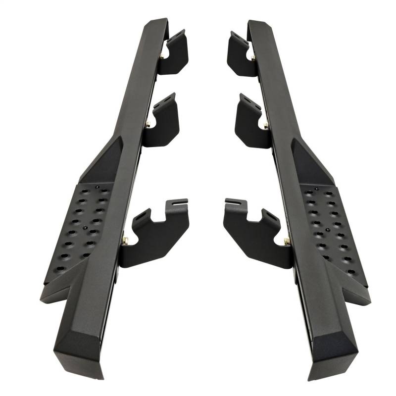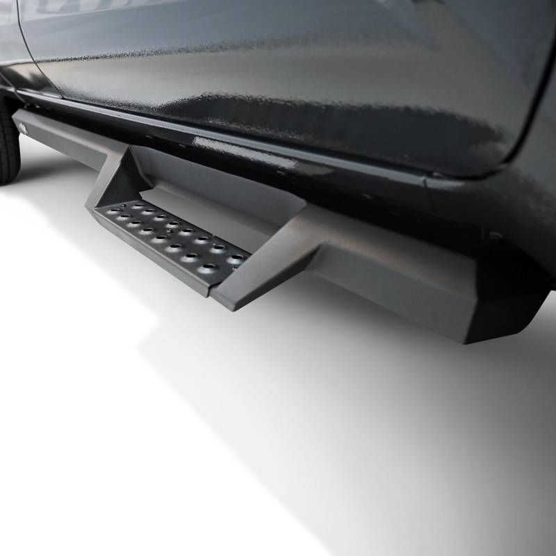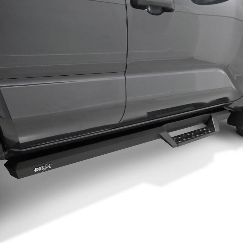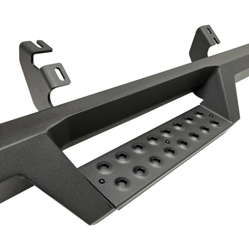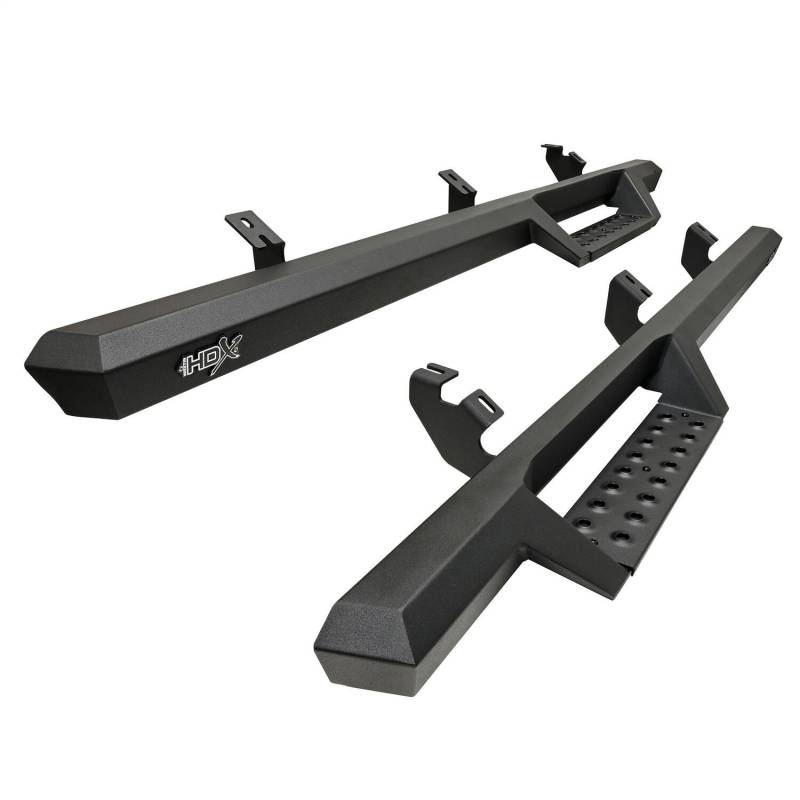 Westins HDX Drop Nerf Step Bars provide the rugged look and function that truck owners need and want. They feature a solid 1-piece steel construction and heavy duty punch plates creating high traction step areas. The HDX Drop Nerf Step Bars also feature Westins notched bar design which provides more than 2in. of additional toe/heel placement versus competitive brands. Available in a textured black finish that complements Westin HDX Bumpers. The HDX Drop Steps have vehicle specific applications and include a vehicle specific mount kit, installation hardware and instructions.