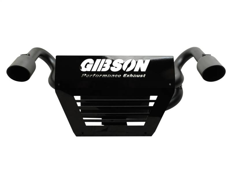 Compliment your Polaris Ranger RZR XP 1000 with Gibson Twin Rear Exit Exhaust. Get an extra increase of 2-4 rear wheel horsepower, 3-5 more foot pounds of torque and 2-3mph. With Gibson non-packed mufflers you can guarantee a consistent level of sound and performance quality for the duration of your vehicles lifetime. Utilizing a compression spring fitting allows plenty of movement to handle all types of abuse eliminating the possibilities of breakage, Finished with a personalized powder coated rear beauty plate and a complete black Ceramic Exhaust and intercooled tips. All necessary hardware is included for a complete hassle free bolt on installation. Tested with a decibel reading of 96 dbs per the SAEJ 1287 testing procedure. USFS Approved Spark Arrestor. Made in the USA.