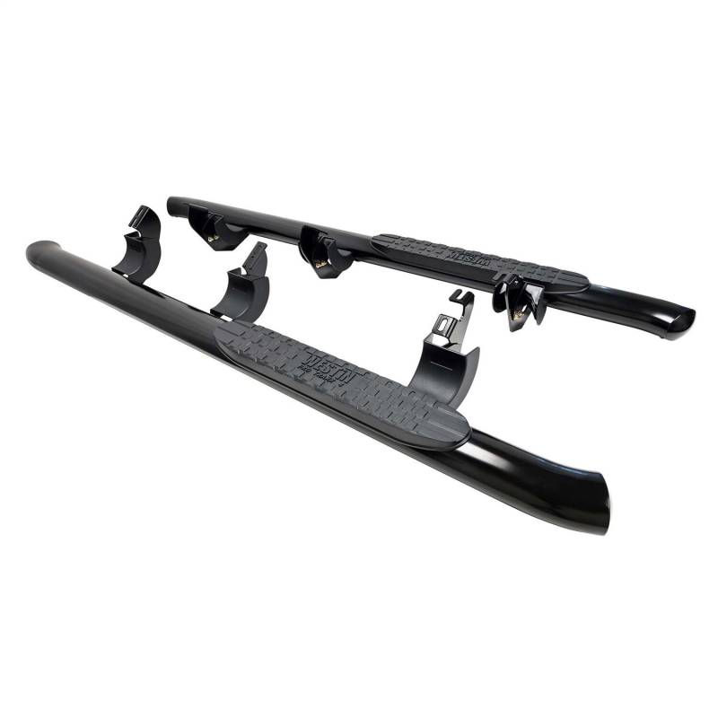 Westins Pro Traxx 4 Oval Nerf Step Bars feature a 4in. oval tube with a heavy-duty step pad that provides a wider and more secure step area. They feature 30 factory style bends that have seamless domed ends so there are no end-caps or exposed bolt heads. Applications are bolt-on installation.