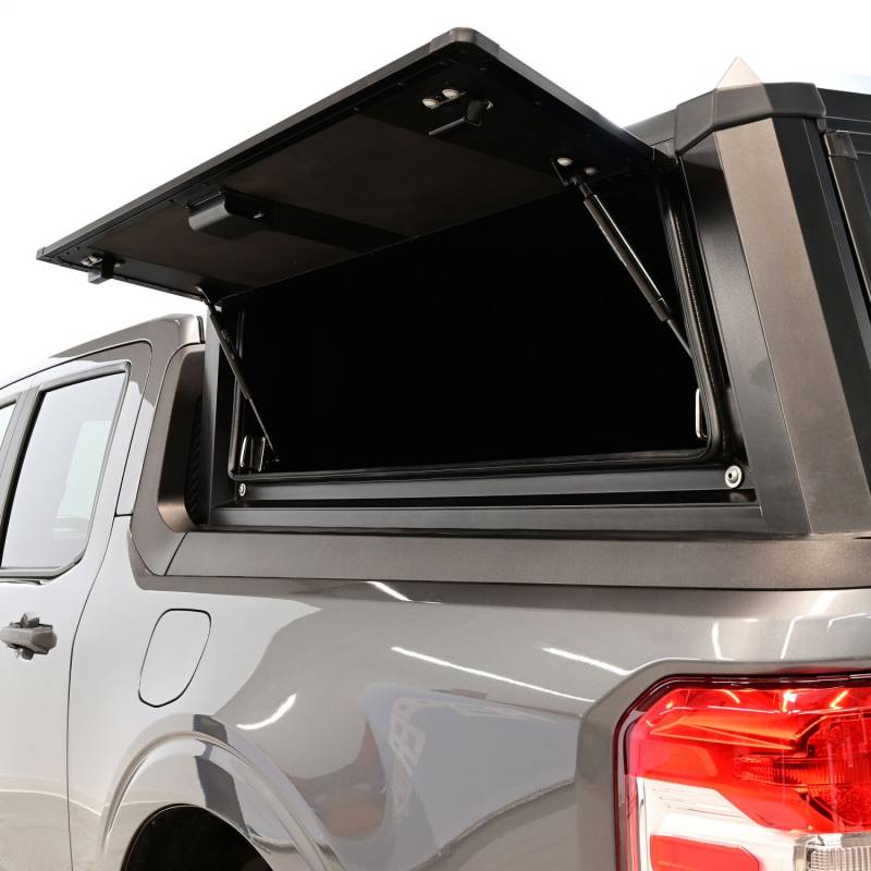 Elevate your truck experience with the Westin EXP Truck Cap – your journey, your way. Crafted with a 5-piece extruded aluminum construction, it strikes the perfect balance between strength and lightweight design. The double wall aluminum gullwing slide doors with locking t-handles ensure security, while the no-drill installation allows for effortless setup. With superior weather and dust resistance provided by the EPDM sponge double seal, your gear stays protected in any conditions. Equipped with integrated roof rails for mounting accessories, an auto lock/unlock rear door for easy accessibility, and heavy-duty locking t-handles with emergency release lever on driver side door, the EXP Truck Cap is built for versatility and safety. Plus, with a dynamic load limit of 300 lbs. and a static load limit of 700 lbs., it can handle all your adventure essentials. The powder-coated aluminum finish provides long-lasting corrosion protection, and the textured black finish, along with all necessary hardware and installation instructions included, completes the package. Experience durability, convenience, and style with the Westin EXP Truck Cap – because your truck deserves the best.