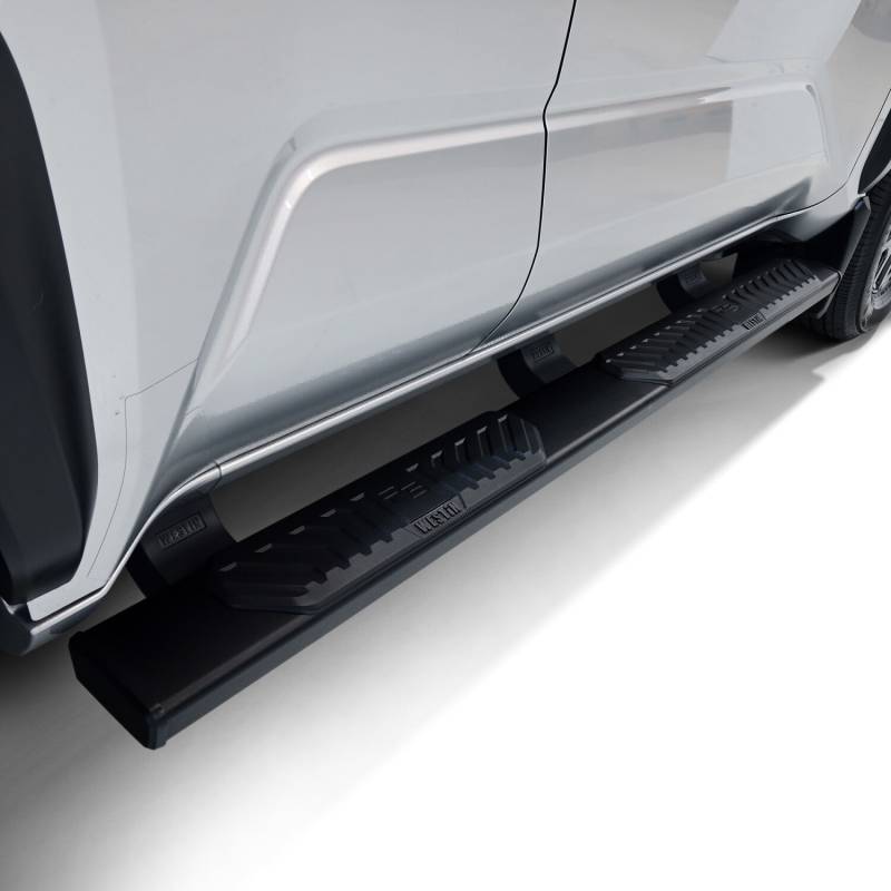 Westin R5 Nerf Step Bars have 5 inch wide step area with a unique molded polymer step pad design. R5 Nerf Step Bars are rocker panel mounted and include injection molded bracket covers for a full and stylized appearance. R5 LED Light Kit upgrade is available, sold separately.