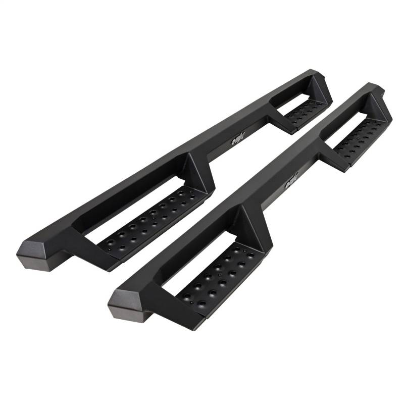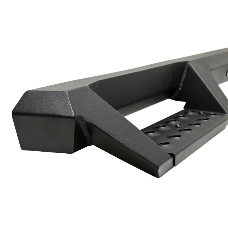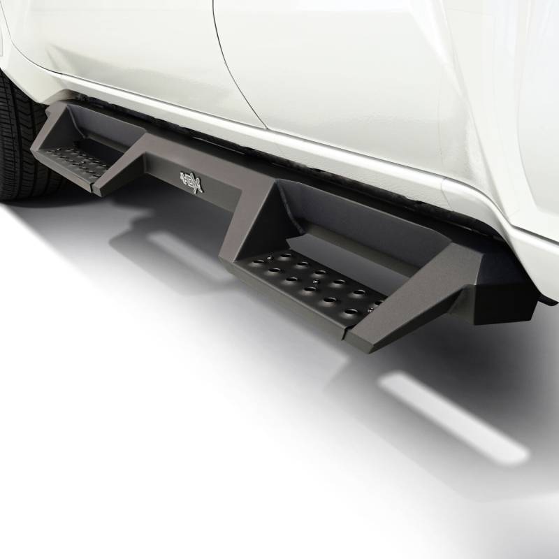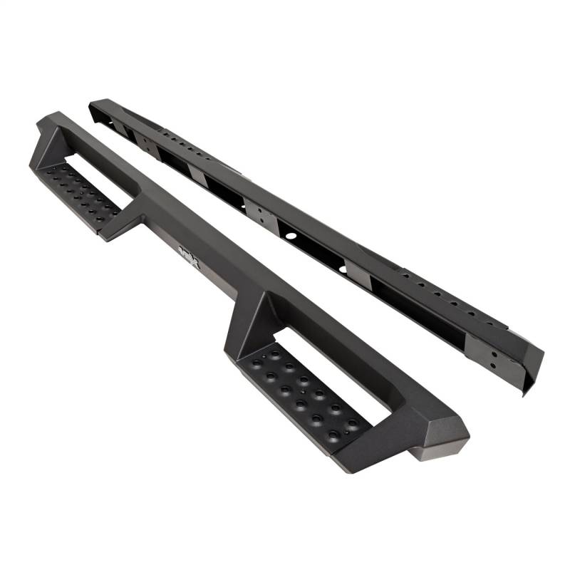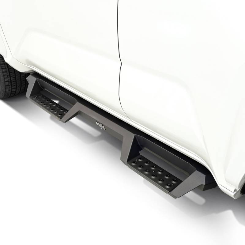 Westins HDX Drop Nerf Step Bars provide the rugged look and function that truck owners need and want. They feature a solid 1-piece steel construction and heavy duty punch plates creating high traction step areas. The HDX Drop Nerf Step Bars also feature Westins notched bar design which provides more than 2in. of additional toe/heel placement versus competitive brands. Available in a textured black finish that complements Westin HDX Bumpers. The HDX Drop Steps have vehicle specific applications and include a vehicle specific mount kit, installation hardware and instructions.