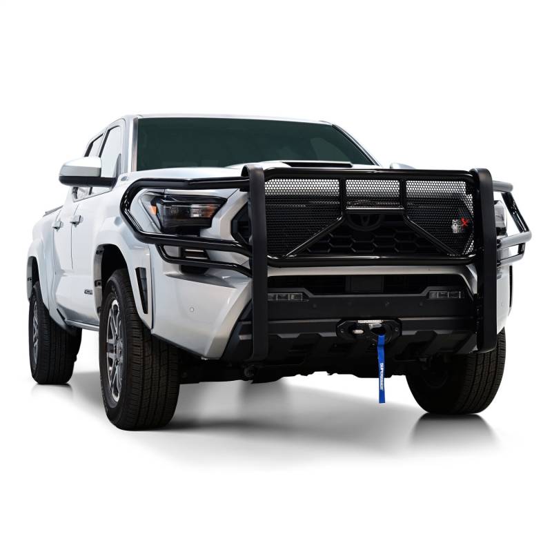 The HDX Grille Guard is the ultimate in extreme truck gear. It?s a fully welded 1-piece grille guard that features full wraparound wings made of heavy duty 2 in. diameter tube. Uprights are finished and protected with extra wide rubber strip that is 1/8 in. thick and 2 3/4 in. wide resulting in a solid clean look. The full punch plate grille protects the vehicles grille area. HDX Grille Guards are available in stainless and black powder coat finish.