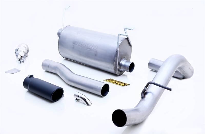 Every GIBSON performance power exhaust system is designed, dyno and dynamically tested, and precision fabricated to assure unmatched quality. Only the industry's finest components even qualify for our design and development program. For maximum power and torque over the widest power band, we manufacture a merging pressure single exhaust system which allows your engine to operate more powerfully and efficiently than any other exhaust systems. The superior quality of our GIBSON high-flow performance exhaust system will provide you with increased hill climbing and passing power. More usable horsepower, Improved acceleration, power and response, Improved low and mid-range performance – increased torque, Improve fuel economy, reduced back-pressure for cooler engine operating temperatures and extended life. Retains all stock emissions equipment -50 state Legal. The Gibson Stainless Steel 3.5 in. Super flow performance muffler and 3.5 in. Stainless steel Tubing minimizes back-pressure and assures cooler operating temperatures. Each system is finished off with a 4.0 in. Black Ceramci Intercooled stainless steel exhaust tip. Kits include a universal polished stainless steel generator exhaust tip, heavy-duty mounting hardware, zinc-plated hangers and clamps. All kits feature a lifetime limited Warranty. Made in USA