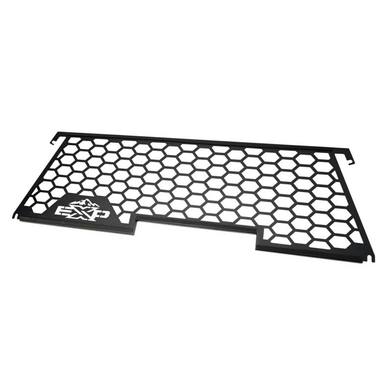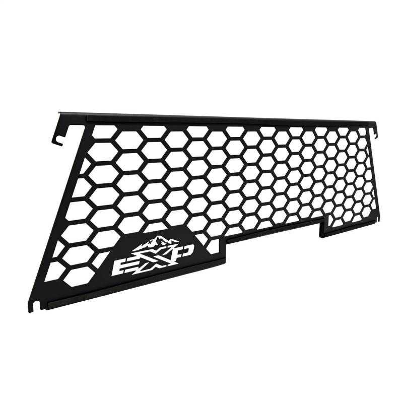 EXP Truck Cap Rear Window Protector has a mesh design and is made of powder coated aluminum which provides long lasting corrosion protection. The window protector bolts-in which allows for easy DIY installation over the rear window glass pritecting from damage. It also offers additional security and protection.
