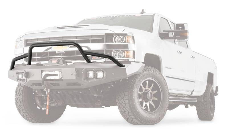 The Baja Grille guard (push bar) bolts onto a Warn Ascent front bumper for style and functionality.'