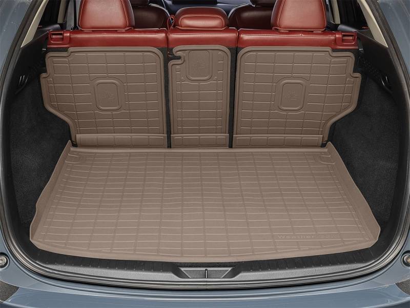 Do you often find yourself putting your back seats down to make room for pets, gear, groceries and more? WeatherTech's SeatBack Cargo Liner HP safeguards the base and up the back seats of your vehicle's cargo area, even when the seats are down! This cargo liner is made from the same heavy-duty, rubber-like material as our bestselling FloorLiner HP, offering a durable one-piece mat that defends against spills and messes. Its patent pending expandable accordion hinge allows you to put your back seats in the full-down position and maintain uninterrupted coverage - no more spills or pet hair adhering to the back of your seats or cargo area! There's even a specially designed water retention ribbing system that helps trap water. SeatBack Cargo Liner HP defends against the dirt, grass, mud, and debris that come from workout gear, dogs, sports equipment, groceries, or anything else you put in your cargo area. Non-slip nibs on the underside - and hook fasteners - keep this trunk liner in place - both on the floor and up the backs of your seats. Plus, because it's a one-piece mat, installation and removal for cleaning is easy. Have young kids? No problem! SeatBack Cargo Liner HP features a trimmable outline to accommodate attachments for child car seats - known as ISOFIX - while the cargo mat stays in place. Made from a thermoplastic elastomer, this cargo mat offers the flexibility and durability needed for maximum protection. It won't break down in extreme weather, and is 100% recyclable with no latex, PVCs, cadmium or lead. Enjoy high-performance, full coverage and protection for the bottom and seat backs of your cargo area with the American-made SeatBack Cargo Liner HP.