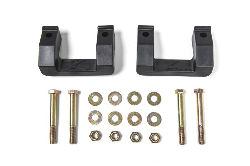 Level out the stance on your Chevrolet/GMC 1500 truck or SUV with these 2" lower strut spacers from Zone Offroad. Designed for quick and easy install along with a precision fit this kit includes a pair of spacers as well as longer mounting hardware to allow clearance for up to 33" tires.