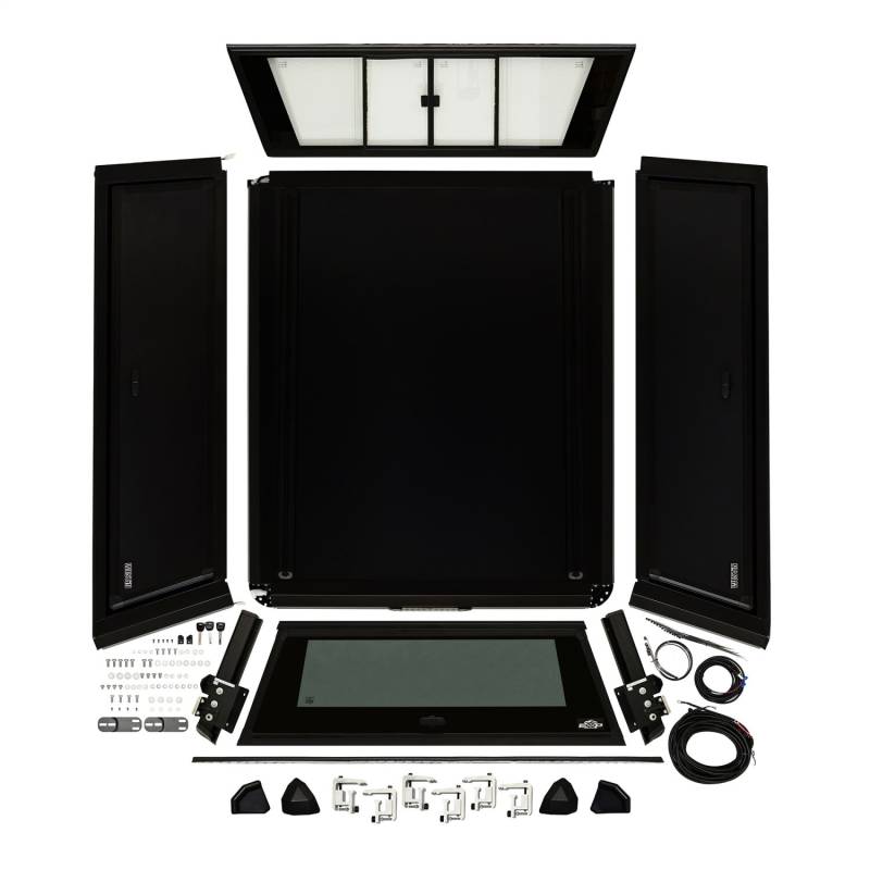Elevate your truck experience with the Westin EXP Truck Cap With A Sliding Front Glass Window – your journey, your way. Crafted with a 5-piece extruded aluminum construction, it strikes the perfect balance between strength and lightweight design. The double wall aluminum gullwing slide doors with locking t-handles ensure security, while the no-drill installation allows for effortless setup. With the front sliding glass window, it allows pass throuhg access from the truck cab to the truck cap. The window can be opened from the interior or the exterior. With superior weather and dust resistance provided by the EPDM sponge double seal, your gear stays protected in any conditions. Equipped with integrated roof rails for mounting accessories, an auto lock/unlock rear door for easy accessibility, and heavy-duty locking t-handles with emergency release lever on driver side door, the EXP Truck Cap is built for versatility and safety. Plus, with a dynamic load limit of 300 lbs. and a static load limit of 700 lbs., it can handle all your adventure essentials. The powder-coated aluminum finish provides long-lasting corrosion protection, along with all necessary hardware and installation instructions included, completes the package. Experience durability, convenience, and style with the Westin EXP Truck Cap – because your truck deserves the best.