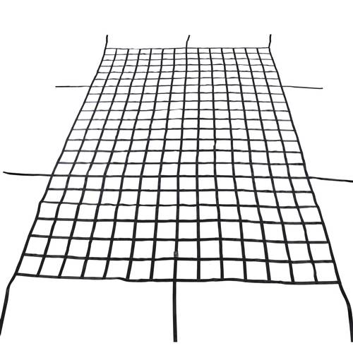 8x12 Foot Cargo Restraint System. 1 Inch webbing with 2200 LB breaking strength. Box and Cross-stitched joints for extra strength. 10 Tie-down points with Ratcheting Straps and Wire Hooks.