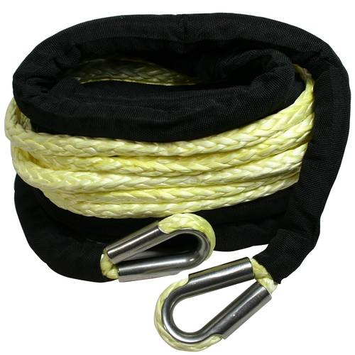 Synthetic Rope Extension for extending your current winch rope. Loop Thimble on Both Ends for Easy Connections. High visibility yellow color. 10mm dia x 50ft long