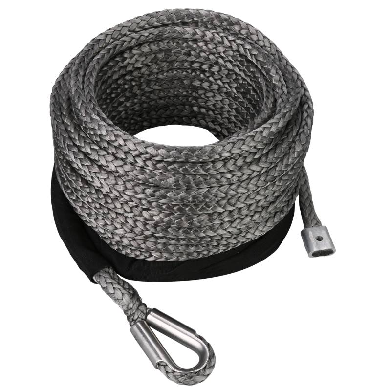 Synthetic Winch Rope 8x100 8k-12.3k BS. Excellent rope designed for the budget minded customer. High quality HPME rope includes stainless steel tube thimble, and abrasion sleeve