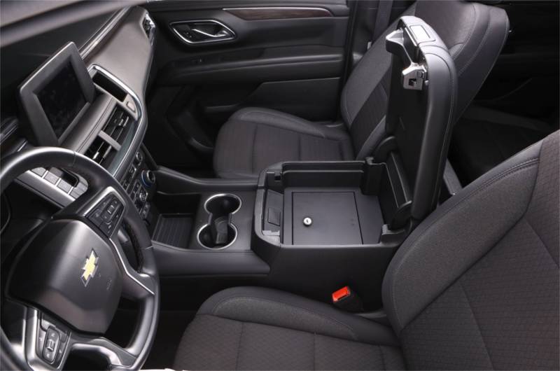 Upgrade your SUV with real security that doesn't sacrifice factory convenience. The Tuffy center console safe for 2019–2025 Chevy Tahoe, Suburban, and GMC Yukon transforms the cavernous OEM console into lockable protection built to disappear in plain sight. Designed with vehicle-specific precision, it keeps the stock look intact—your factory armrest, tray, and console lid all function exactly as intended. Inside, you gain a fortress for valuables, electronics, and daily carry items, with heavy-duty steel construction, Pry-Guard(R) strength, and a stealth profile that blends seamlessly into your interior. Installation is fast and clean, bolting directly into OEM points with no drilling required. Whether you choose the traditional keyed lock or the 3-digit combo version, both deliver pry-resistant security with quick access when you need it. This is the Tahoe/Yukon/Suburban console safe that finally brings together OEM fit, everyday usability, and professional-grade security—engineered for drivers who expect their SUV to do more than haul passengers.