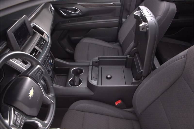 Upgrade your SUV with real security that doesn't sacrifice factory convenience. The Tuffy center console safe for 2019–2025 Chevy Tahoe, Suburban, and GMC Yukon transforms the cavernous OEM console into lockable protection built to disappear in plain sight. Designed with vehicle-specific precision, it keeps the stock look intact—your factory armrest, tray, and console lid all function exactly as intended. Inside, you gain a fortress for valuables, electronics, and daily carry items, with heavy-duty steel construction, Pry-Guard(R) strength, and a stealth profile that blends seamlessly into your interior. Installation is fast and clean, bolting directly into OEM points with no drilling required. Whether you choose the traditional keyed lock or the 3-digit combo version, both deliver pry-resistant security with quick access when you need it. This is the Tahoe/Yukon/Suburban console safe that finally brings together OEM fit, everyday usability, and professional-grade security—engineered for drivers who expect their SUV to do more than haul passengers.