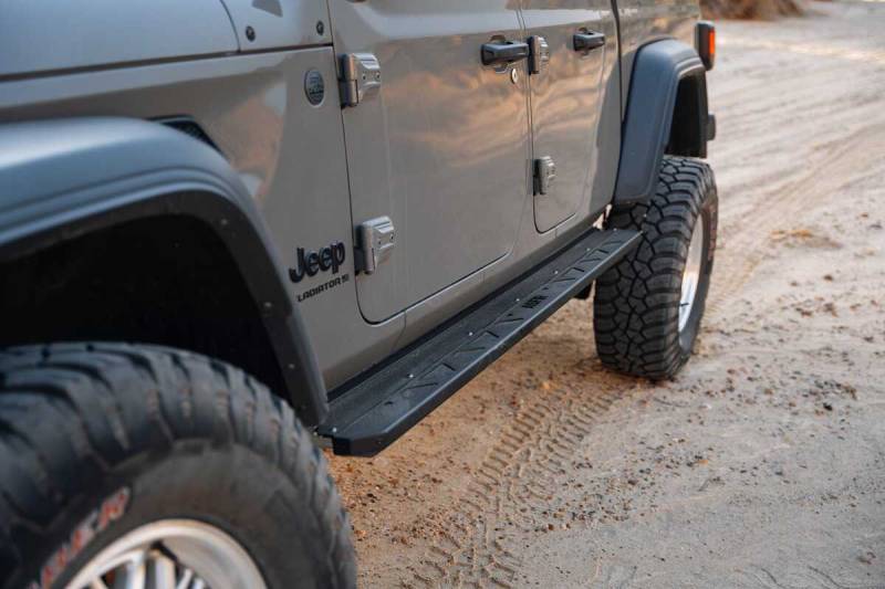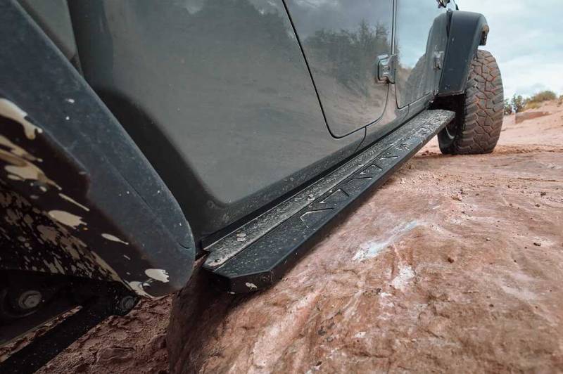 The Toyota 4RUNNER Rock Sliders are heavy-duty steel guards engineered for superior off-road protection and clean, integrated styling. Reinforced with a solid steel bar, they defend rocker panels and doors while serving as functional side steps with added grip. Mount directly to factory chassis points with no drilling required for easy installation.