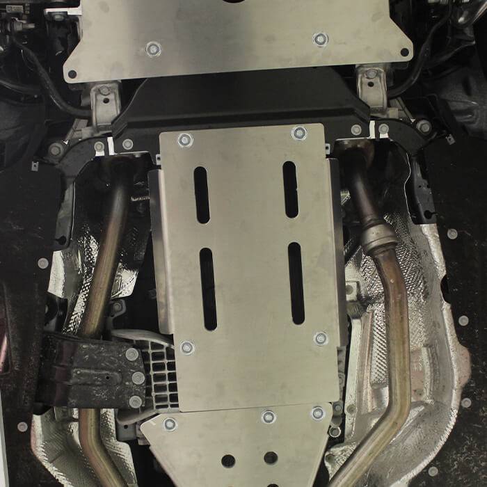Designed to safeguard the transmission and nearby components from off-road hazards.