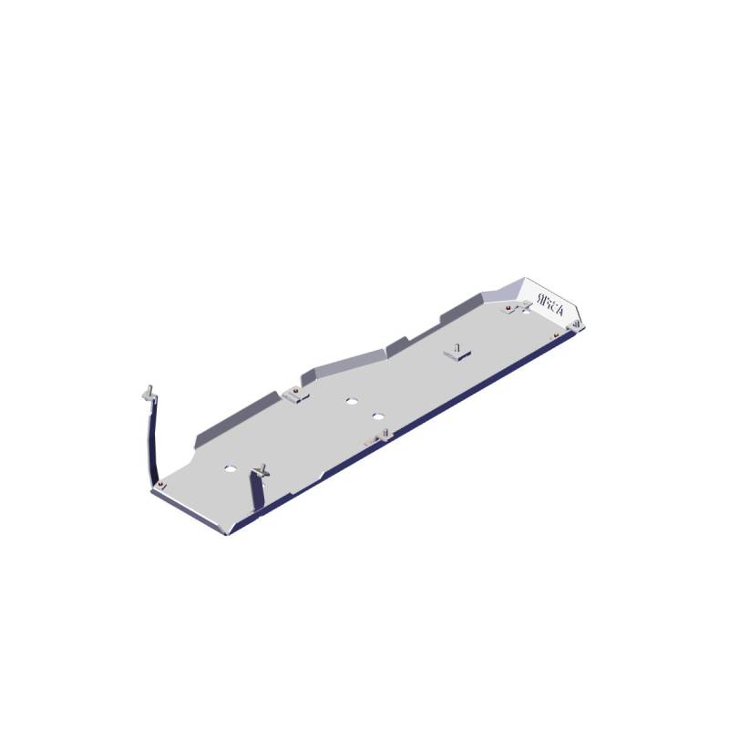 Bolt-on installation to the chassis with zinc-coated steel brackets for corrosion resistance.